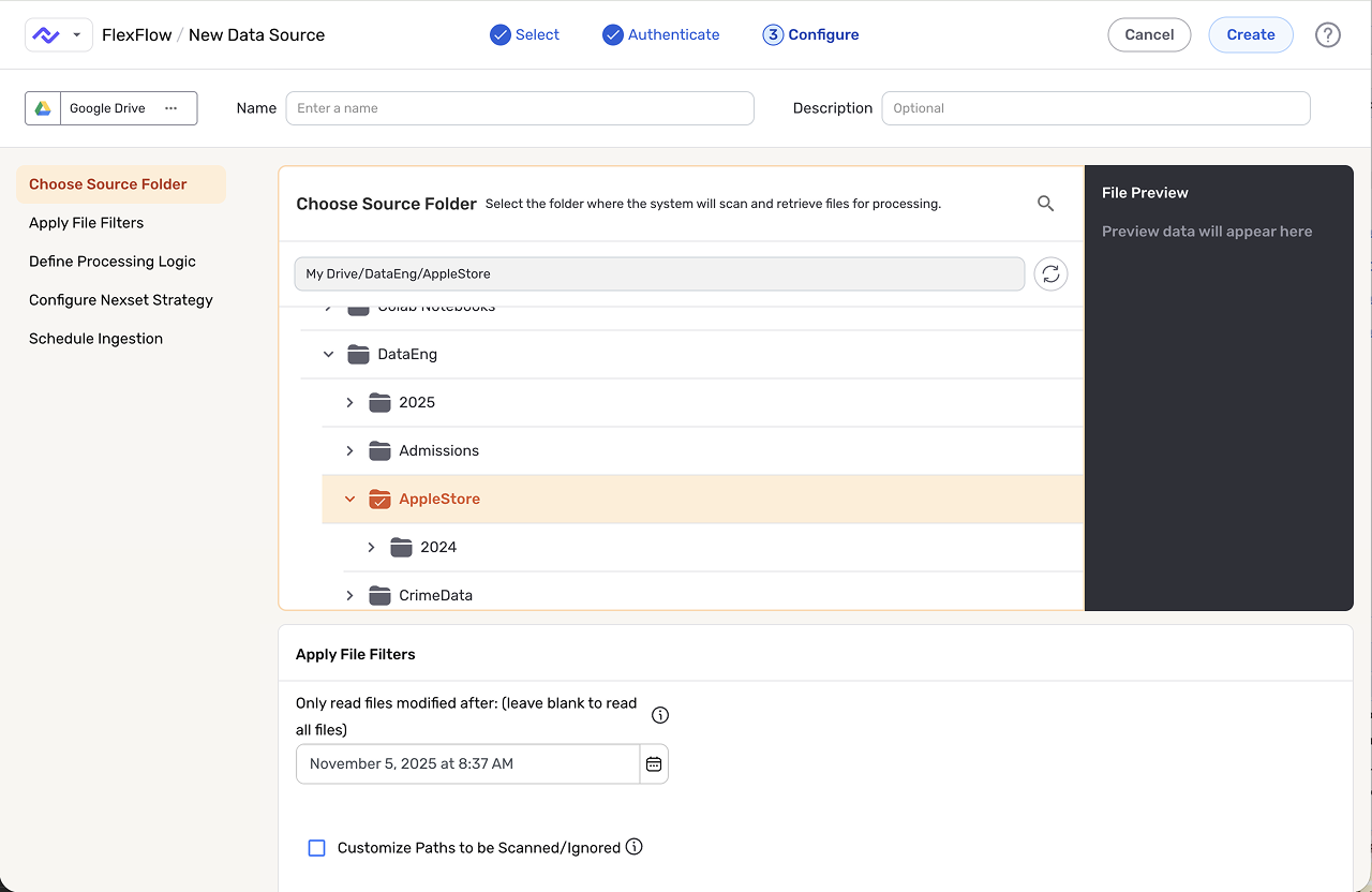 The flow to do that is really counterintuitive because you need to put a file path here, which needs to be hard-coded.